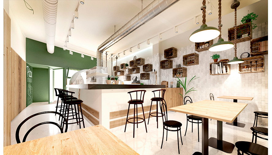 Projecte de disseny i reforma i imatge corporativa d'una pizzeria take away amb espai de degustació al Prat de Llobregat que aposta pels productes de proximitat i Km 0.